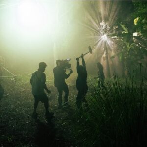En la otra parte de las sonoridades, asistimos a un notable trabajo debido al detallismo y la efectividad de los ruidos o sonidos a lo largo de la trama, todo ello debido a la virtuosidad de uno de los mejores arquitectos de la sonoridad cinematográfica en el país como lo son Franklin Hernández y su equipo. Cada chirrido de puerta, cada rotura de rama en el suelo del bosque o de ese vaso al romperse en un pleito discotequero, entre otros, nos obligan cual Ritchie Ray y Bobby Cruz, a aguzar nuestros oídos para no perder la concentración en ningún aspecto de la trama.