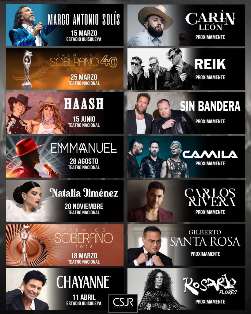 De cara a 2026, ya cuenta con fecha confirmada Premios Soberano 2026, que se celebrará el 18 de marzo en el Teatro Nacional, así como el concierto de Chayanne, programado para el 11 de abril en el Estadio Quisqueya, siendo este el único evento con fecha específica confirmada para ese año hasta el momento.