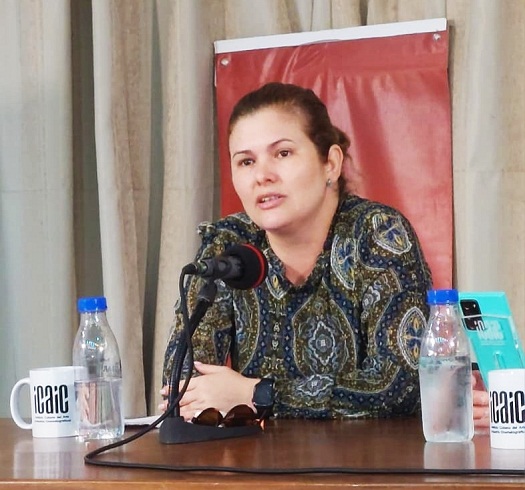 La conferencia, presentada por Daniela Gómez, contó con la participación de Alexis Triana Hernández, presidente del ICAIC; Yanin Martínez, vicepresidenta del instituto, Tania Delgado, directora del Festival Internacional del Nuevo Cine Latinoamericano, y Reynier Rodríguez, especialista de Creación Artística.
